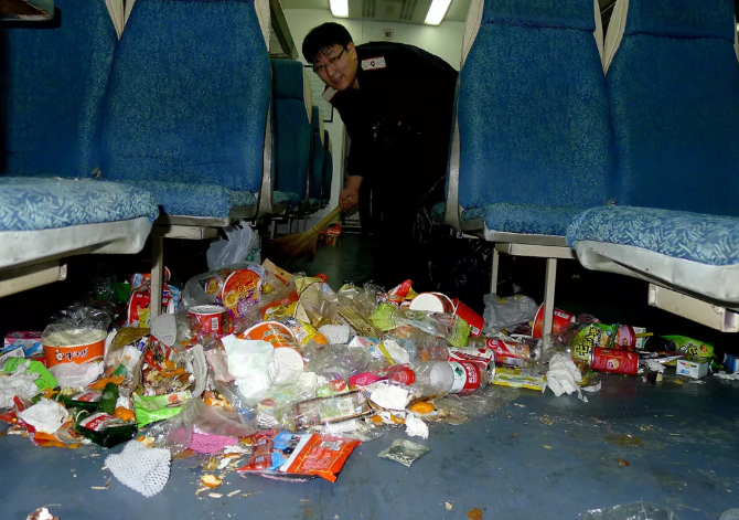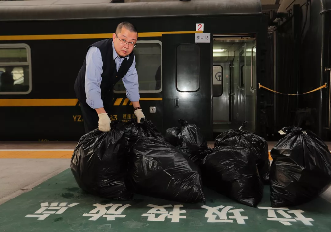?從北京西到漢口,兩個車廂就卸下來七袋垃圾。