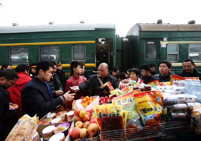 ?方便面、礦泉水和火腿腸是鐵路出行的“標(biāo)配三件套”。