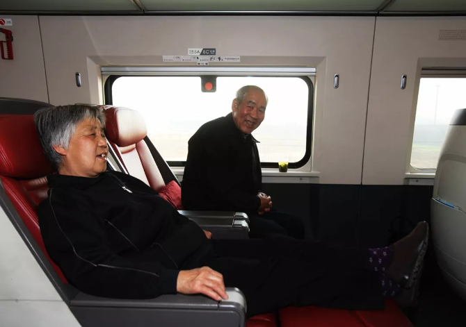 ?第一次體驗高鐵出行的老兩口很興奮,他們說和年輕時坐火車的感受太不一樣了。