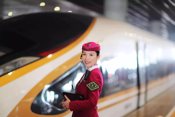 ?笑容親切的高鐵乘務(wù)員。