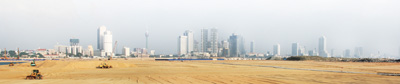 ?由中國(guó)交通建設(shè)有限公司投資建設(shè)的斯里蘭卡科倫坡港口城項(xiàng)目填海施工現(xiàn)場(chǎng)。記者苑基榮/攝
