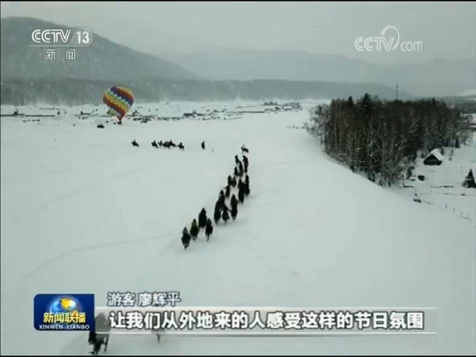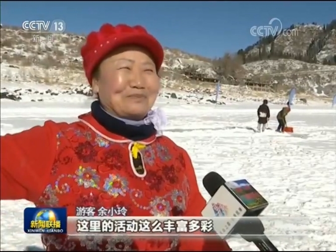 游客 余小玲:眼前一片一片看不到邊的白雪,特別舒服,而且天也特別藍,這里的活動這么豐富多彩。