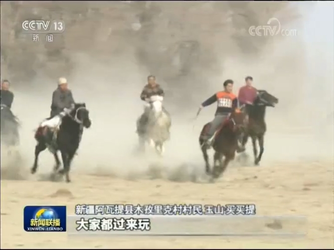新疆阿瓦提縣木孜里克村村民 玉山·買買提:給我們搞了個場地,大家都過來玩,看我們叼羊、賽馬比賽,這樣旅游也發(fā)展起來了,對我們收入也挺好的。