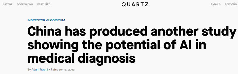 石英網(wǎng)的這篇文章認為,人工智能在疾病診斷領(lǐng)域的應用研究大多來自中國,不足為奇。中國在人工智能研究方面投入了大量資金,自2007年以來,中國的人工智能論文數(shù)量增長了400%。利用這項技術(shù)來促進醫(yī)療保健特別重要,因為中國希望在農(nóng)村和城市實現(xiàn)醫(yī)療保健的標準化,解決人口老齡化問題,提高醫(yī)療保健系統(tǒng)的效率。