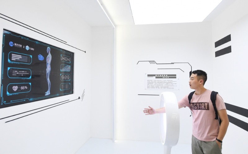 2018年8月23日,觀眾在首屆中國國際智能產(chǎn)業(yè)博覽會上體驗醫(yī)療人工智能產(chǎn)品。新華社 記者王全超/攝