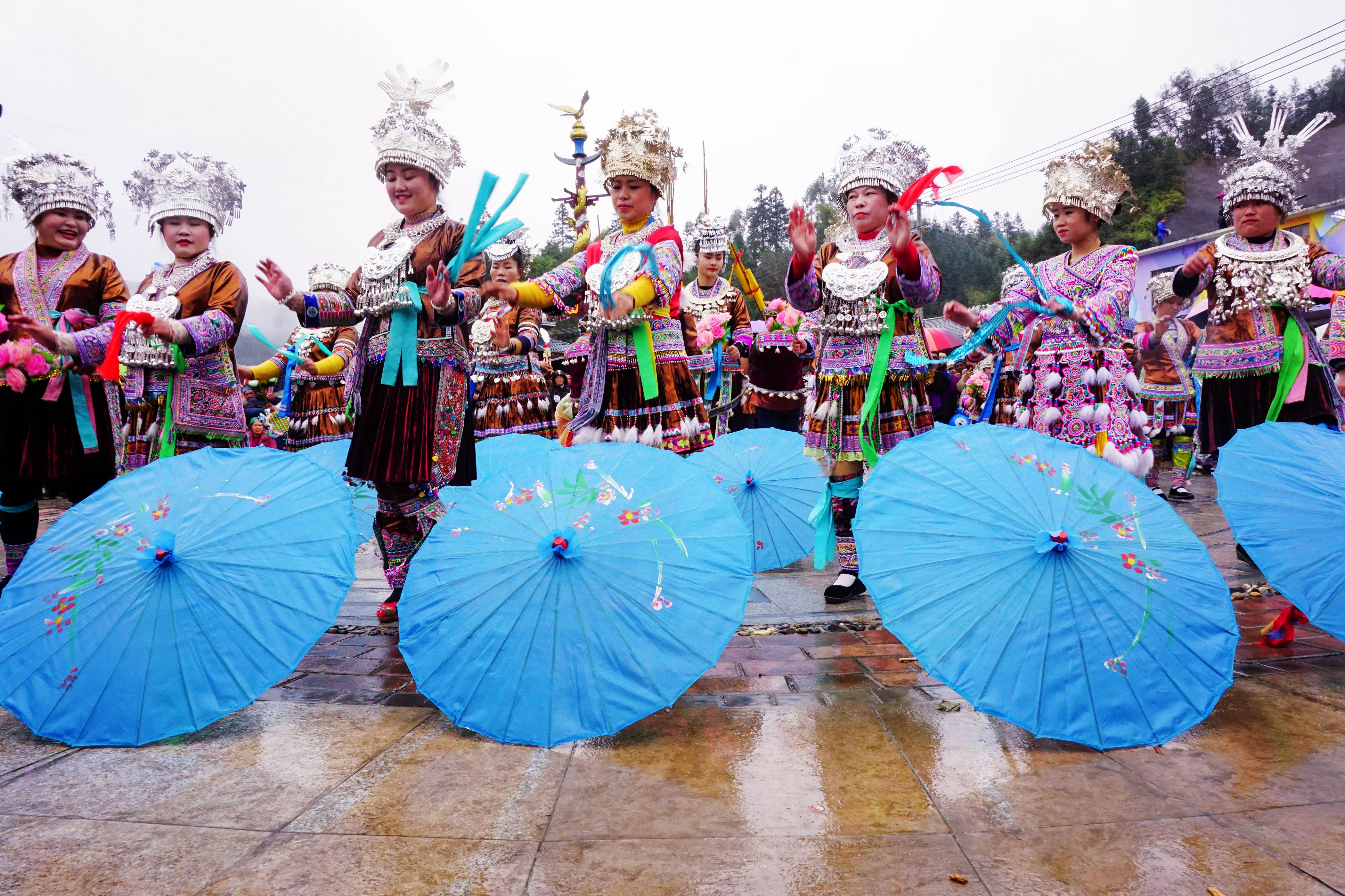 2月13日,在廣西柳州融安縣安寧村大袍屯,苗族群眾載歌載舞歡慶“芒蒿節(jié)”。