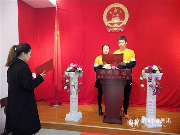 昆明信息港訊 記者李紅鸞 “執(zhí)子之手,與子偕老”,2月14日是西方的情人節(jié),年輕情侶們希望在這個(gè)浪漫甜蜜的日子一起走進(jìn)婚姻的殿堂,共同許下愛的誓言,當(dāng)天,共有158對(duì)新人在五華區(qū)政務(wù)服務(wù)中心進(jìn)行結(jié)婚登記,共同步入婚姻殿堂。