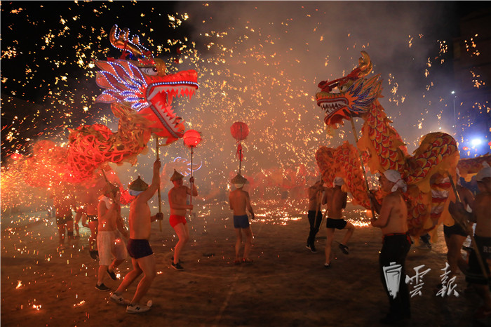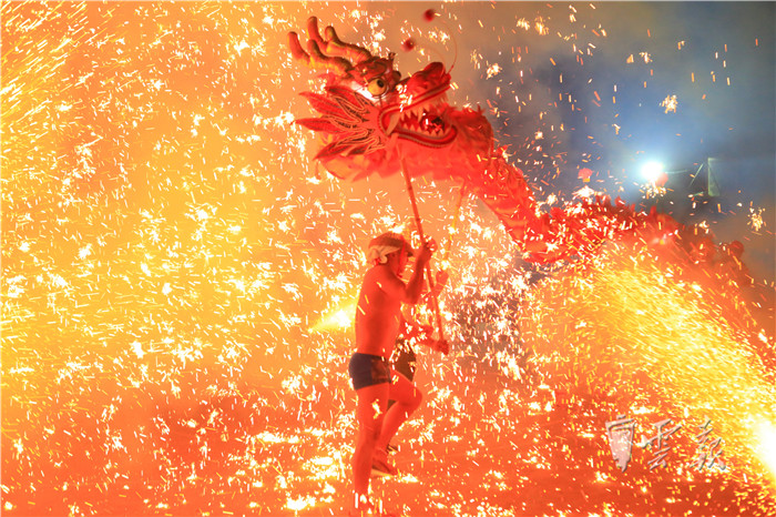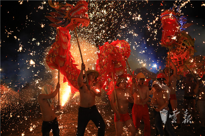 “壩子里早已經(jīng)是人山人海、群龍共舞,只見鐵花師傅用特質(zhì)的鐵瓢在火中舀起鐵水,他向上揚(yáng)出鐵水,隨即揮竿擊打鐵水,被擊打后的鐵花四散著飛向天空,朵朵鐵花在天空中絢麗綻放。此時鐵花飛濺、流光溢彩,鐵花照亮了整個天空,真可謂是璀璨奪目、氣勢磅礴、蔚為壯觀,鐵花伴隨著人群中的驚叫聲、歡呼聲、驚嘆聲落向了人群……”這是昭通市彝良縣作家湯朝陽對彝良縣千年古鎮(zhèn)牛街鬧元宵的一段精彩描述。這不,即將到來的元宵佳節(jié),彝良首屆龍燈文化旅游節(jié)將在千年古鎮(zhèn)牛街如約舉行。舞龍、舞獅、牛燈、打鐵花、竹筒花、文藝表演、篝火舞蹈,一個個精心打造、精彩紛呈的節(jié)目,只等四方賓客來嗨!