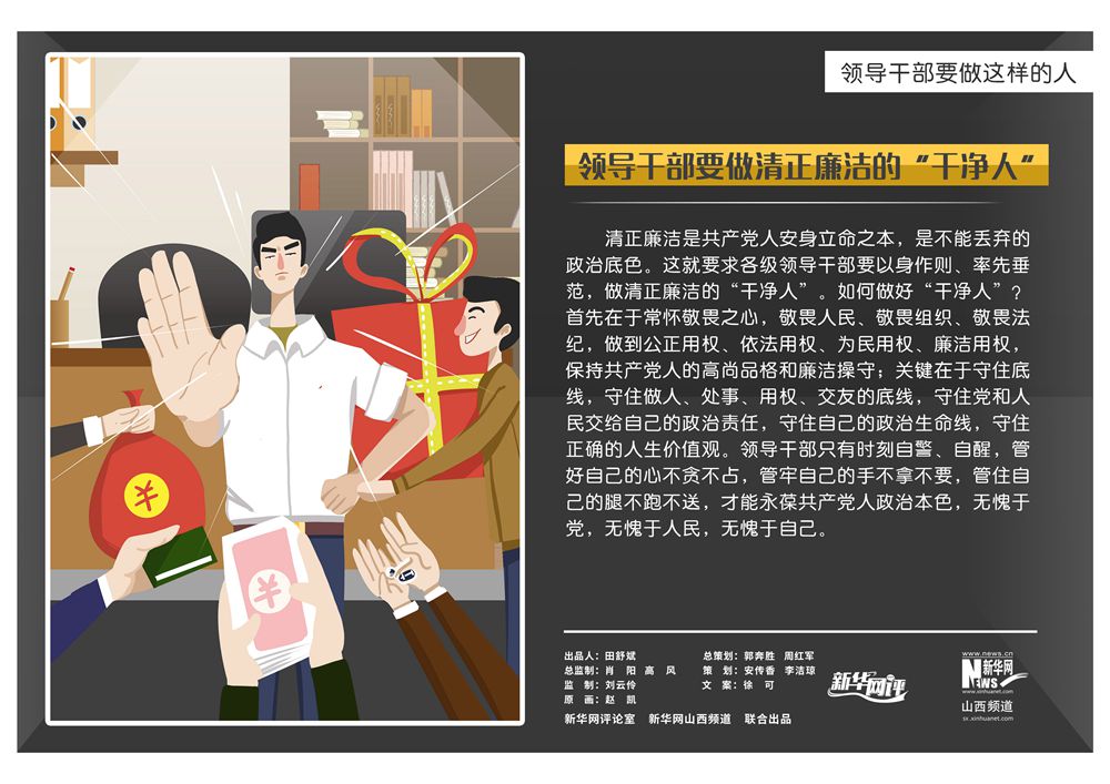 清正廉潔是共產(chǎn)黨人安身立命之本,是不能丟棄的政治底色。這就要求各級領(lǐng)導(dǎo)干部要以身作則、率先垂范,做清正廉潔的“干凈人”。如何做好“干凈人”?首先在于常懷敬畏之心,敬畏人民、敬畏組織、敬畏法紀(jì),做到公正用權(quán)、依法用權(quán)、為民用權(quán)、廉潔用權(quán),保持共產(chǎn)黨人的高尚品格和廉潔操守;關(guān)鍵在于守住底線,守住做人、處事、用權(quán)、交友的底線,守住黨和人民交給自己的政治責(zé)任,守住自己的政治生命線,守住正確的人生價(jià)值觀。領(lǐng)導(dǎo)干部只有時(shí)刻自警、自醒,管好自己的心不貪不占,管牢自己的手不拿不要,管住自己的腿不跑不送,才能永葆共產(chǎn)黨人政治本色,無愧于黨,無愧于人民,無愧于自己。(新華網(wǎng)評 作者徐可)