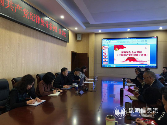 昆明信息港訊 通訊員趙正先 為讓廣大黨員干部更好地把《中國共產(chǎn)黨紀律處分條例》學深悟透、融會貫通。2月15日,西山區(qū)紀委派駐城管綜合執(zhí)法局紀檢組組長張哲為區(qū)委宣傳部、區(qū)委黨史研究室、區(qū)總工會、區(qū)婦聯(lián)黨員宣講了《中國共產(chǎn)黨紀律處分條例》。宣講會由西山區(qū)委宣傳部副部長楊俊鋒主持。