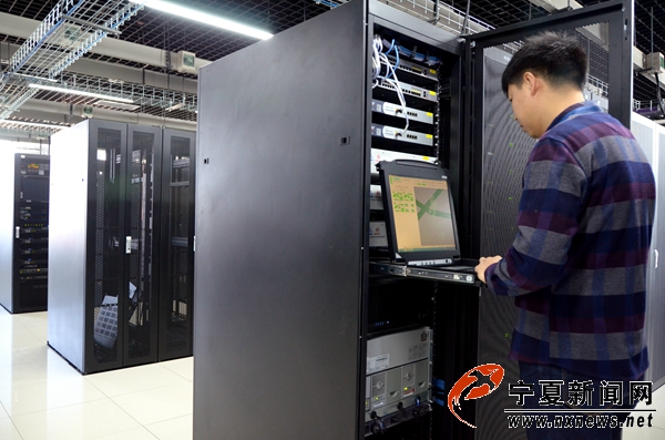 機(jī)務(wù)員在中心機(jī)房查看通信導(dǎo)航監(jiān)視設(shè)備運(yùn)行情況。