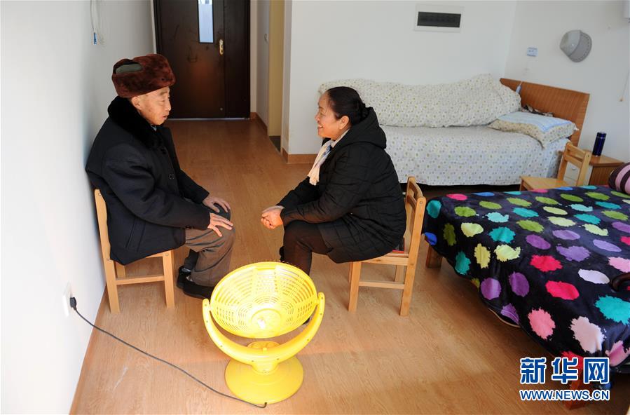 貴州省貴安新區(qū)高峰鎮(zhèn)麻郎村村支書劉喬英在敬老院與老人談心(2月2日攝)。新華社記者楊文斌/攝