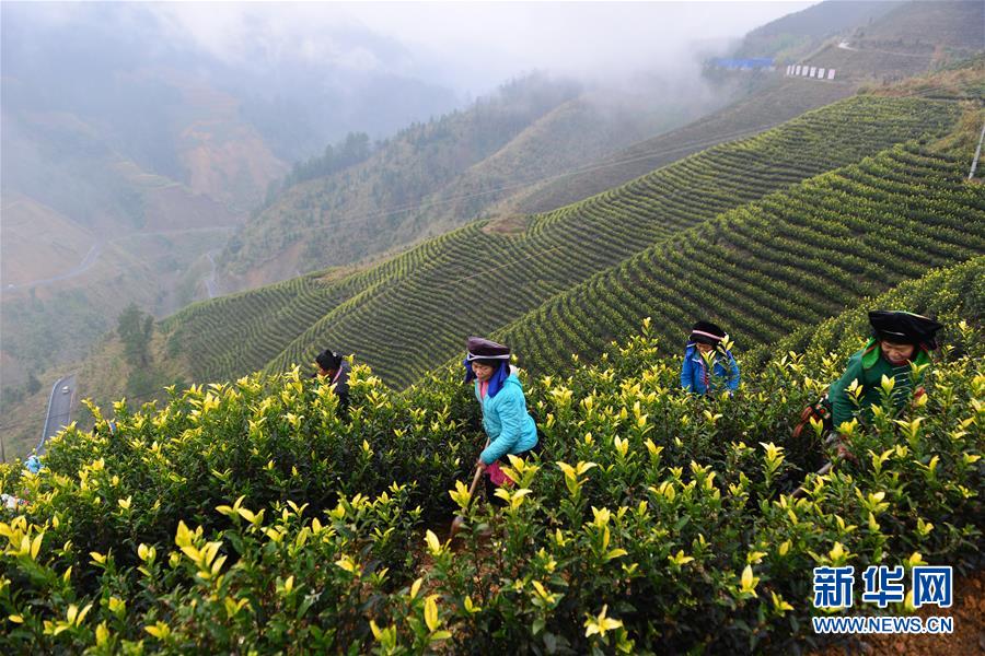 苗族群眾在貴州省丹寨縣排調(diào)鎮(zhèn)甲石村管護(hù)茶場(chǎng)(2018年1月20日攝)。新華社記者楊文斌/攝