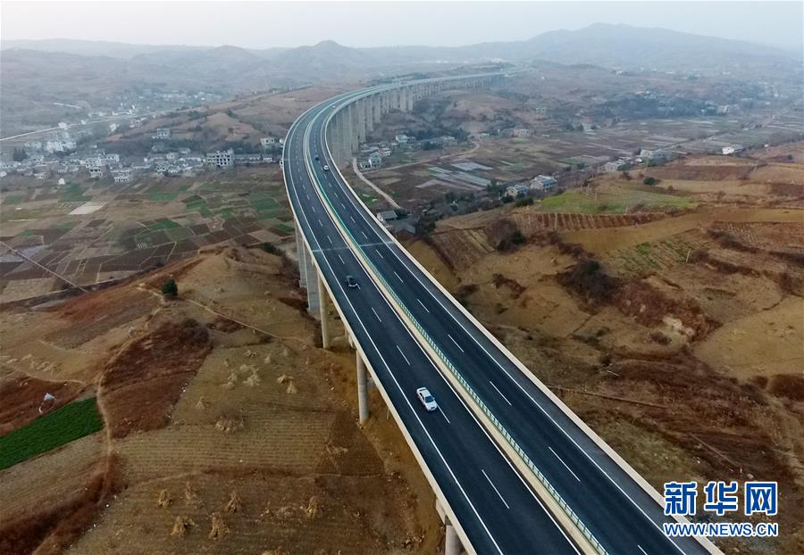 這是貴州六威高速公路上寨特大橋(1月25日無人機(jī)拍攝)。新華社記者楊文斌/攝