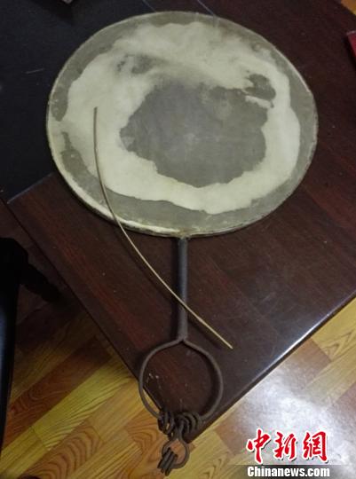 圖為端鼓腔表演伴奏樂器羊皮鼓?!√K本善/攝