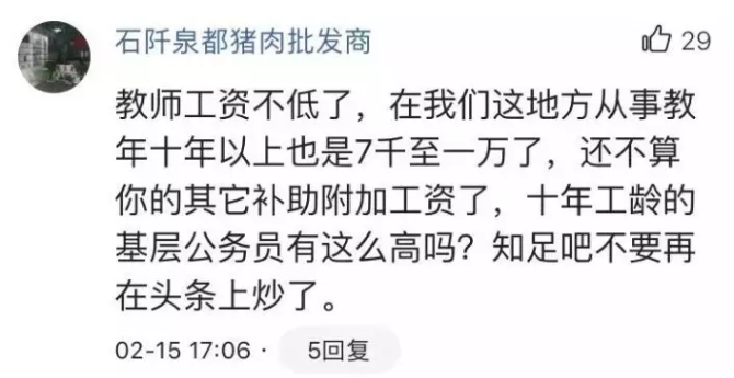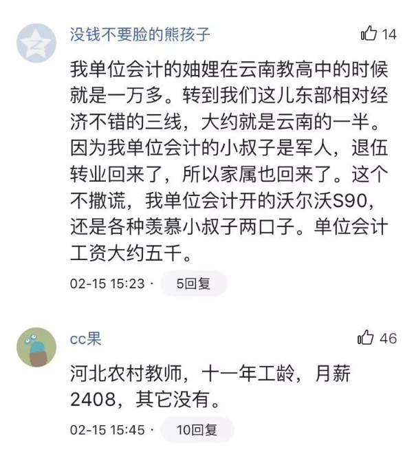 對(duì)于目前大多數(shù)教師的薪資水平、怎么看待教師待遇、怎么評(píng)價(jià)待遇的高低才客觀(guān)等問(wèn)題,眾多網(wǎng)友進(jìn)行了熱烈的討論,有教師還曬出了自己工資單……