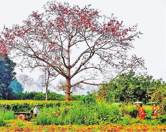 曼法岱村民小組緊鄰瀾滄江邊一片面積600余畝的攀枝花林。每年春天,紅彤彤的攀枝花競相開放,傣族婦女們撿拾新鮮花朵做成豐富多樣的菜品。