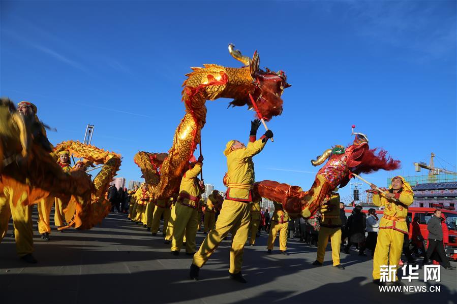 2月16日,山西省大同市舉行非物質(zhì)文化遺產(chǎn)展演,民間藝人在表演舞龍。新華社發(fā) 任雪峰/攝