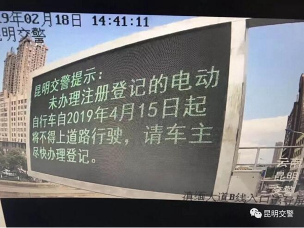 按照昆明市《關(guān)于加強(qiáng)昆明電動自行車管理的通告》及《關(guān)于辦理電動自行車登記的公告》要求,“非標(biāo)”電動車注冊登記工作將于2019年4月14日結(jié)束,截止2月18日,辦理“非標(biāo)”電動自行車注冊登記的工作日僅有38天。自2019年4月15日起,未辦理注冊登記的電動自行車,不得上道路行駛。屆時,昆明交警將依法對駕駛未注冊的電動自行車上路行駛的駕駛?cè)诉M(jìn)行處罰,即“未在規(guī)定時限內(nèi)辦理注冊登記”的,將依據(jù)《云南省道路交通安全條例》第九十一條的規(guī)定處200—500元罰款,并可扣留車輛。