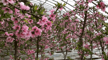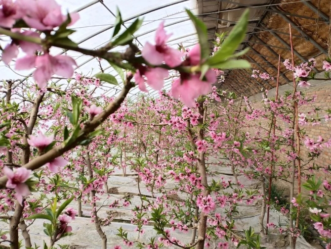 2月12日,正月初八,記者來到一師九團(tuán)十一連溫室大棚種植基地,只見一排排鋼架大棚猶如一條條白色長龍俯臥田間。眼下,室外乍暖還寒,棚內(nèi)溫暖如春。在水蜜桃大棚里,滿棚的桃花花開正艷,一朵朵、一簇簇粉紅艷麗的花掛滿枝頭,陣陣清香沁人心脾,一幅春意盎然的別樣景象。
