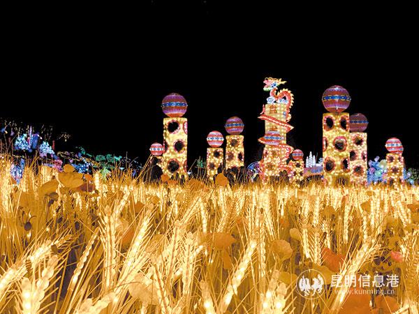 昆明世博園點亮彩燈花海。記者胡耀元/攝