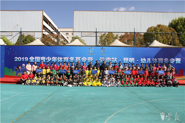 20日舉行的全國青少年體育冬夏令營(云南站)幼兒體育項目由云南省體育局、云南省教育廳主辦,昆明市人民政府機(jī)關(guān)第三幼兒園、玉溪市紅塔區(qū)第三幼兒園承辦?;顒臃譃槔ッ骱陀裣獌蓚€賽區(qū),共16個州市18支幼兒園隊伍參加。作為昆明賽區(qū)舉辦地,昆明市三幼設(shè)置了豐富多彩的冬令營活動,活動包括參觀昆明市消防中隊,體驗云梯、現(xiàn)場學(xué)習(xí)滅火方法;一分鐘跳繩、運(yùn)球接力、記憶大比拼等競技運(yùn)動;還有平衡車障礙賽、五人疊疊高等趣味項目。讓孩子們通過冬令營不僅能提高體質(zhì)健康和運(yùn)動技能,也讓他們在集體體育活動中消除與家人分離的不安情緒,塑造“動商”。