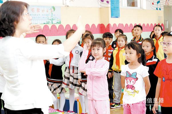 在師專附小月牙塘校區(qū)“三點(diǎn)半課堂”上,上聲樂(lè)課的學(xué)生積極回答問(wèn)題。 記者李海曦/攝