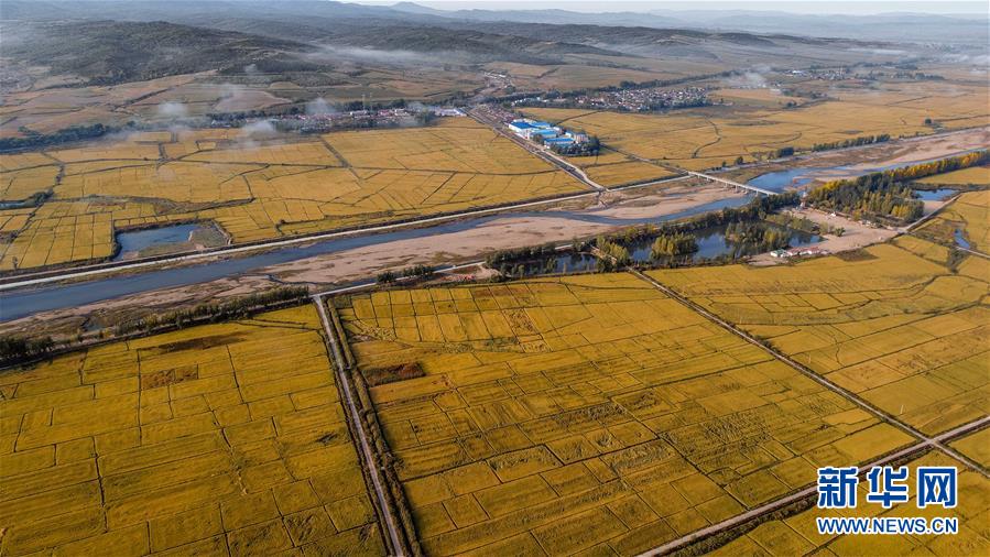 ?這是吉林省和龍市光東村秋日稻田景色(2017年9月22日無人機拍攝)。 新華社 記者許暢/攝