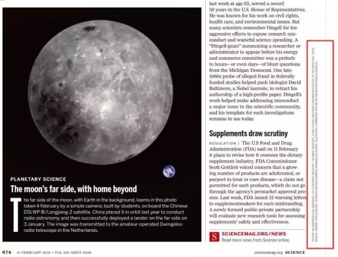2月15日,最新一期《科學(xué)》(Science)雜志中,刊登了一張來(lái)自月球的照片,拍下這張地月同框照的攝影師叫“龍江二號(hào)”,它是伴隨著嫦娥四號(hào)中繼星任務(wù)發(fā)射的一顆小衛(wèi)星。