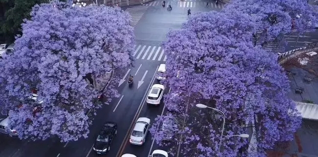 5月份的時候,昆明會被藍花楹“霸屏”,不管是打開微信還是一些短視頻APP,都可以看到昆明的藍花楹。