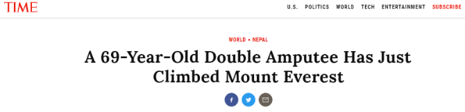 有外國(guó)網(wǎng)友評(píng)論道:“夏伯渝是我新的英雄。25歲的夏在一次失敗的探險(xiǎn)中被凍傷后失去雙腿,但69歲時(shí)成功登頂。他就是永不言敗態(tài)度的縮影。”
