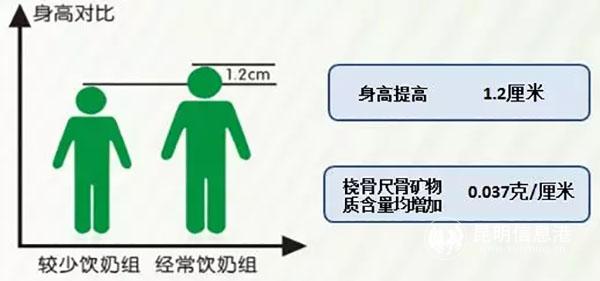 中國疾病預(yù)防控制中心營養(yǎng)與食品安全研究所專家針對長沙市520名四至六年級小學(xué)生經(jīng)常飲奶與較少飲奶同學(xué)的一項對比調(diào)查,得出結(jié)論:經(jīng)常飲奶學(xué)生相比較少飲奶學(xué)生,身高提高1.2厘米,坐高提高0.6厘米,橈骨尺骨礦物質(zhì)含量均增加0.037克/厘米。