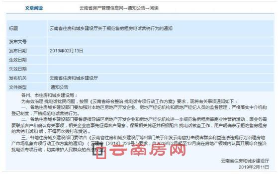 按照云南省住房和城鄉(xiāng)建設(shè)廳公布的關(guān)于規(guī)范售房租房電話(huà)營(yíng)銷(xiāo)行為的通知,自今年2月起至12月底,各地住房城鄉(xiāng)建設(shè)部門(mén)在房地產(chǎn)領(lǐng)域認(rèn)真開(kāi)展綜合整治騷擾電話(huà)專(zhuān)項(xiàng)行動(dòng),嚴(yán)格規(guī)范電話(huà)營(yíng)銷(xiāo)行為。各地住房城鄉(xiāng)建設(shè)部門(mén)要督促指導(dǎo)轄區(qū)房地產(chǎn)開(kāi)發(fā)企業(yè)和房地產(chǎn)經(jīng)紀(jì)機(jī)構(gòu)進(jìn)一步規(guī)范售房租房等商業(yè)性營(yíng)銷(xiāo)活動(dòng),因業(yè)務(wù)需要聯(lián)系客戶(hù)和確認(rèn)有關(guān)事項(xiàng),相關(guān)企業(yè)應(yīng)事先征得客戶(hù)同意,保留相關(guān)憑證并積極配合騷擾電話(huà)核查工作,用戶(hù)明確表示拒絕售房租房的營(yíng)銷(xiāo)電話(huà)后,不得再次撥打和發(fā)送。