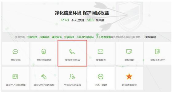 12321官網(wǎng)首頁(yè)舉報(bào)騷擾電話(huà)截圖