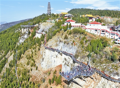 圖為老陰山玻璃棧道航拍圖。紅河日?qǐng)?bào) 記者胡彥輝/攝