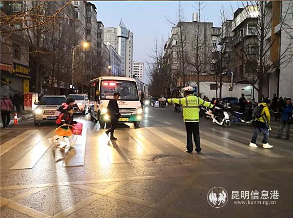 昆明信息港訊 記者合宇聰 隨著昆明市中小學(xué)校陸續(xù)開(kāi)學(xué),昆明交警強(qiáng)化“護(hù)校安園”工作,25日早7時(shí),校園門口及周邊區(qū)域交通流量就已開(kāi)始逐漸增大,而“護(hù)學(xué)崗”民警、輔警也已提前到崗就位,早高峰的疏導(dǎo)保通工作,維護(hù)校園周邊區(qū)域交通秩序,為校園師生出行保駕護(hù)航。