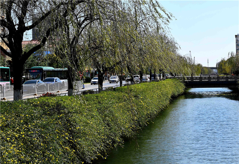 ?南壩路河道沿線春意盎然。記者楊艷輝/攝