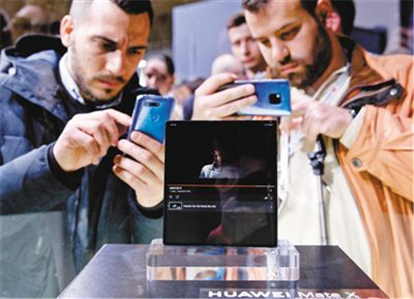 觀眾在華為展臺拍攝華為推出的首款5G折疊屏手機(jī) Mate X。人民視覺