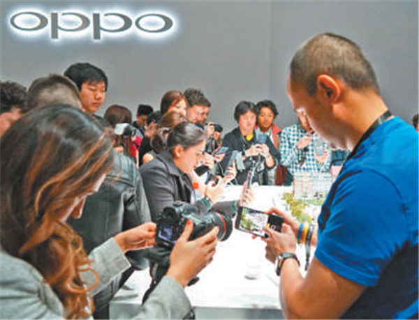 在OPPO舉行的活動上,眾多外國記者爭相體驗(yàn)新技術(shù)。本報(bào)記者 陳曉航攝