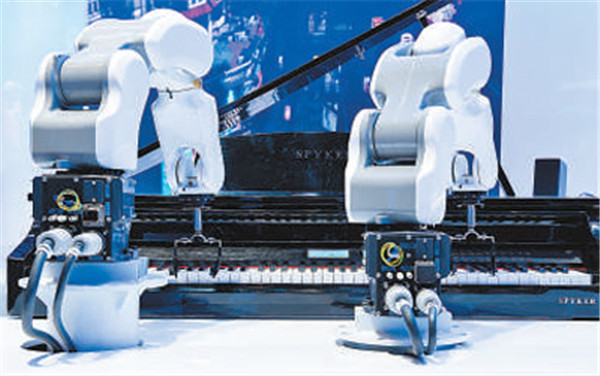 中興展臺展示的彈鋼琴機(jī)器人。人民視覺