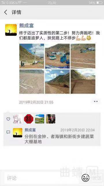 2019年2月20日22:04,云南會澤縣馬路鄉(xiāng)副鄉(xiāng)長熊成富發(fā)了最后一條朋友圈,6張圖片都是關于在金鐘街道以則村建蔬菜大棚的,下面寫著“終于邁出了實質(zhì)性的第二步!努力奔跑吧!我們都是追夢人,扶貧路上不停步。”