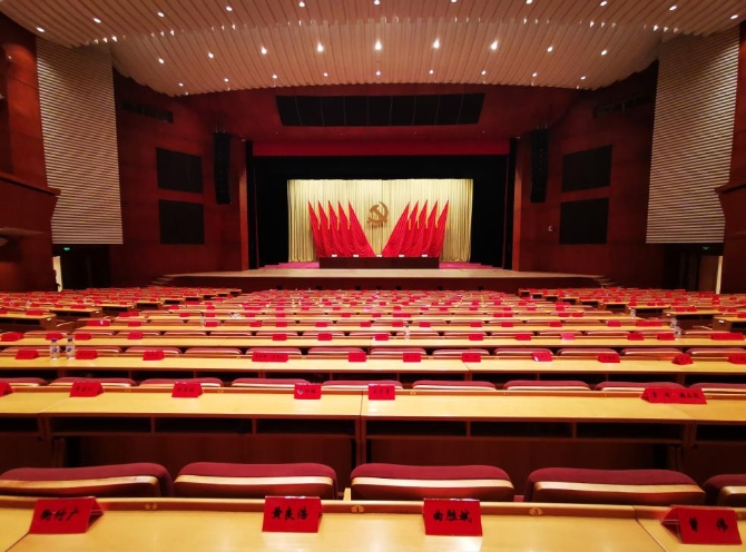 △開學(xué)典禮在黨校禮堂一層舉行。(央視記者張曉鵬拍攝)