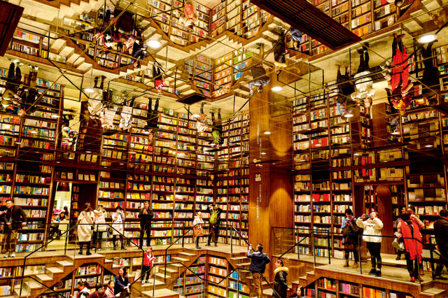 2月8日,重慶鐘書閣書店內(nèi),書友們一邊體驗“魔幻”書店的設(shè)計,一邊選購心儀的圖書 劉潺攝