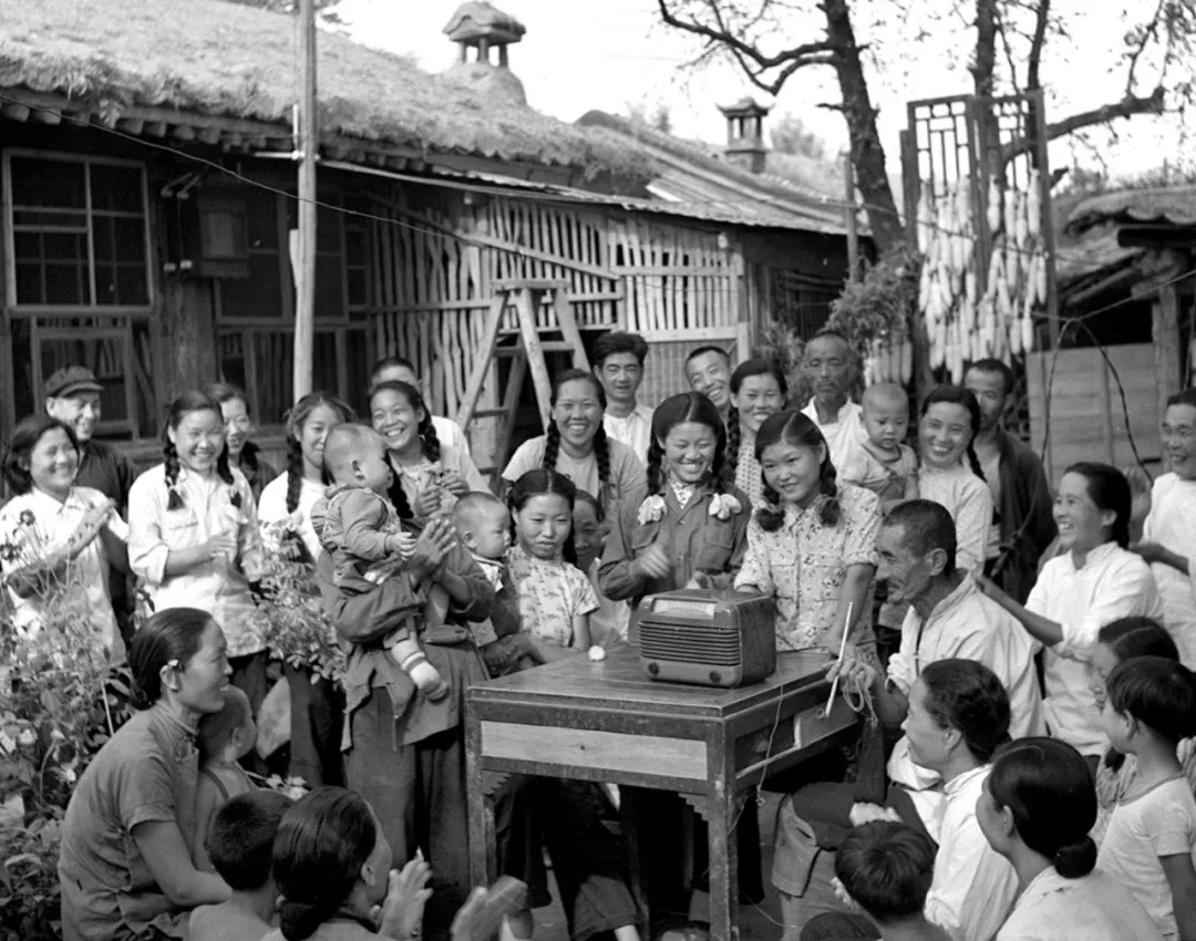 1954年9月,第一屆全國人民代表大會第一次會議在北京召開。圖為北京郊區(qū)農(nóng)民收聽會議實況轉(zhuǎn)播的情形。(新華社記者張瑞華攝)