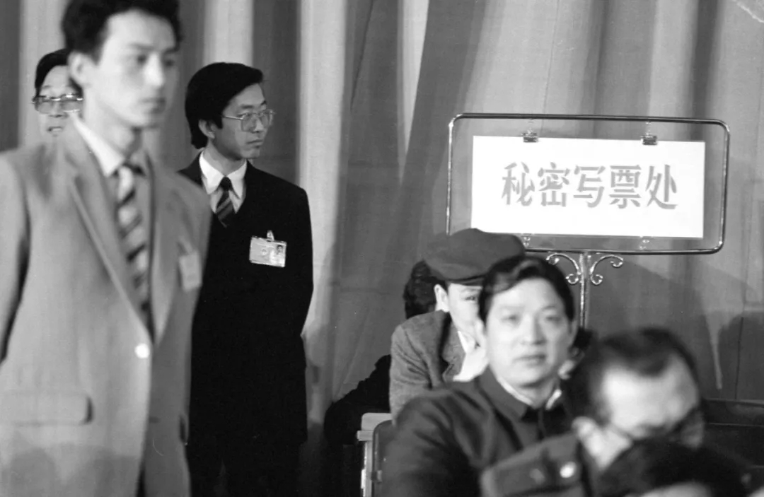 1988年4月,七屆全國人大一次會議第六次全體會議,投票選舉國家機構(gòu)領(lǐng)導(dǎo)人。圖為首次設(shè)立的秘密寫票處。(新華社記者李平攝)