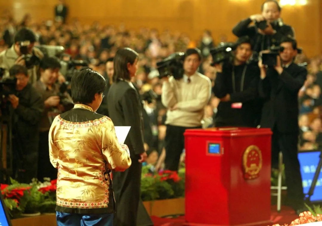 2010年3月,十一屆全國人大三次會議,表決通過了關(guān)于修改選舉法的決定,規(guī)定按城鄉(xiāng)人口1比1分配代表名額。(新華社記者饒愛民攝)