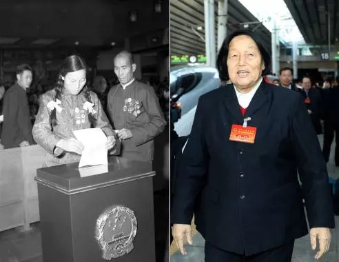 (圖左)1954年,全國人大代表申紀(jì)蘭參加第一屆全國人大第一次會議。(新華社記者曹興華攝)