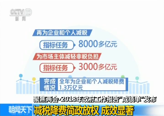 去年政府工作報(bào)告提出,2018年全年再為企業(yè)和個(gè)人減稅8000多億元,為市場(chǎng)主體減輕非稅負(fù)擔(dān)3000多億元。而實(shí)際全年共為企業(yè)和個(gè)人減稅降費(fèi)1.3萬(wàn)億元。減稅降費(fèi)的紅利實(shí)實(shí)在在落在了企業(yè)和個(gè)人的錢(qián)袋子里。同時(shí),簡(jiǎn)政放權(quán)的力度也在擴(kuò)大,企業(yè)開(kāi)辦時(shí)間和工程建設(shè)項(xiàng)目審批時(shí)間都實(shí)現(xiàn)了壓減一半的目標(biāo),各大中心城市開(kāi)辦企業(yè)所需時(shí)間基本在5-8個(gè)工作日。