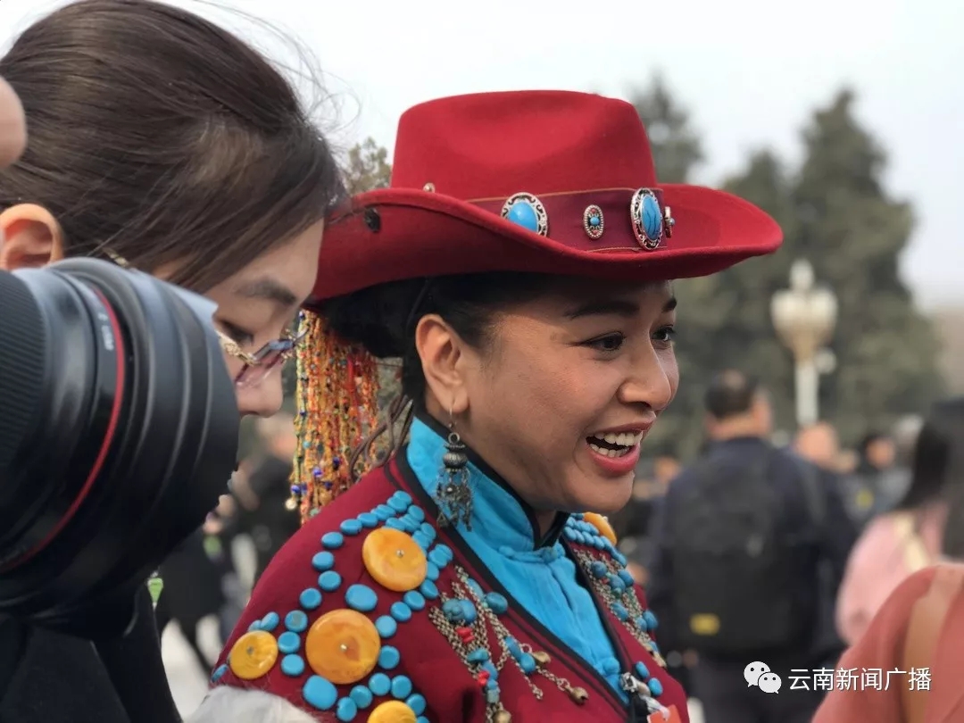 我印象最深刻的是每當(dāng)咱們?cè)颇系奈瘑T們身著少數(shù)民族服飾亮相時(shí),立馬就吸引了周?chē)襟w的目光,大家紛紛圍住委員,你一言我一語(yǔ)詢(xún)問(wèn)委員:“您來(lái)自哪里?”“您是哪個(gè)民族?”“您的提案是關(guān)于哪方面的?”“過(guò)去一年您最關(guān)注的問(wèn)題是什么?”委員們一一耐心細(xì)致地回答,自信的風(fēng)采、真誠(chéng)的回答,通過(guò)鏡頭、聲音和文字記錄了下來(lái)、傳遞了出去。