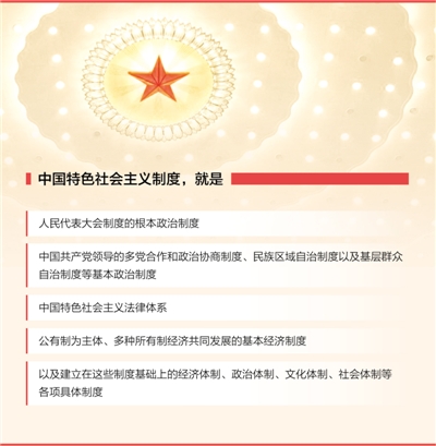?先進(jìn)科學(xué)的制度。制度能夠自我完善、自我革新,得益于制度設(shè)計(jì)的先進(jìn)性、科學(xué)性。中國(guó)制度堅(jiān)持科學(xué)社會(huì)主義基本原則,具有鮮明中國(guó)特色,遵循中國(guó)社會(huì)發(fā)展規(guī)律、制度建設(shè)規(guī)律,是先進(jìn)的、科學(xué)的制度。作為一套相互銜接、相互聯(lián)系的制度體系,它為在堅(jiān)持根本制度、基本制度前提下改革完善各項(xiàng)體制機(jī)制奠定了堅(jiān)實(shí)基礎(chǔ),為發(fā)揮制度優(yōu)勢(shì)提供了有力保障。正如習(xí)近平同志所指出的,“中國(guó)特色社會(huì)主義制度,堅(jiān)持把根本政治制度、基本政治制度同基本經(jīng)濟(jì)制度以及各方面體制機(jī)制等具體制度有機(jī)結(jié)合起來(lái),堅(jiān)持把國(guó)家層面民主制度同基層民主制度有機(jī)結(jié)合起來(lái),堅(jiān)持把黨的領(lǐng)導(dǎo)、人民當(dāng)家作主、依法治國(guó)有機(jī)結(jié)合起來(lái),符合我國(guó)國(guó)情,集中體現(xiàn)了中國(guó)特色社會(huì)主義的特點(diǎn)和優(yōu)勢(shì),是中國(guó)發(fā)展進(jìn)步的根本制度保障?!?/p>